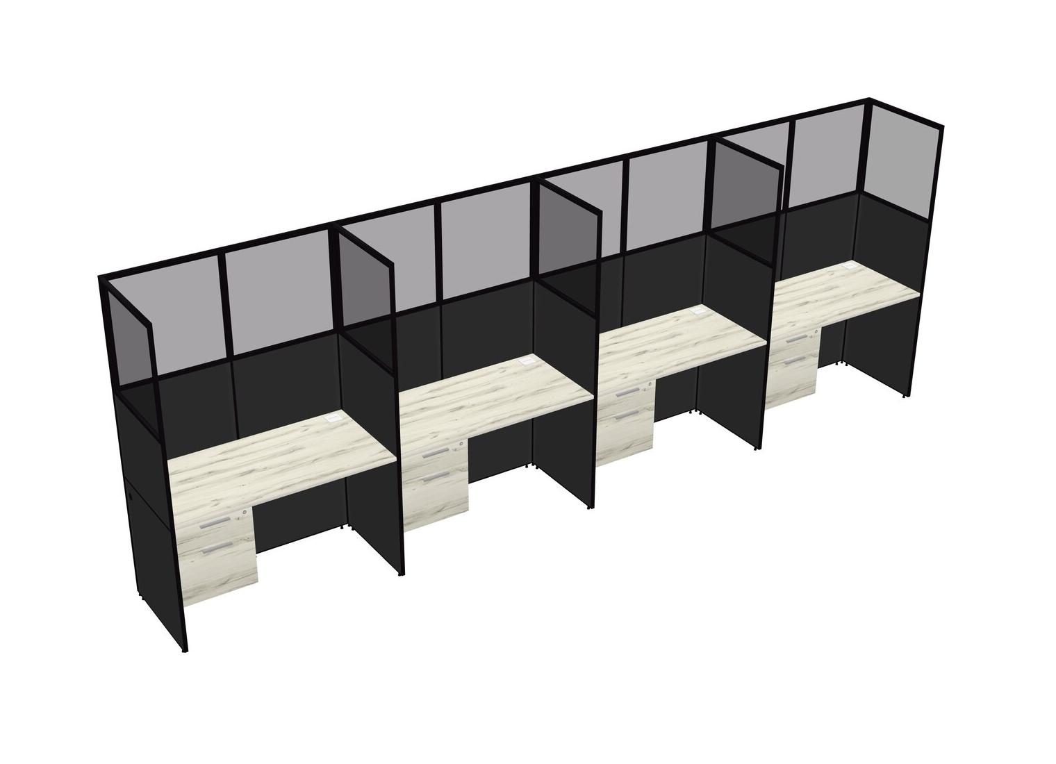 Heinne Holz Shared Rectangular Office Cubicle Panel System With Hanging Drawers For 4 Persons