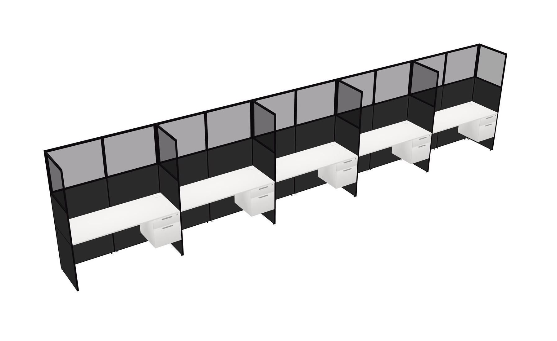 White Shared Rectangular Office Cubicle Panel System With Hanging Drawers For 5 Persons