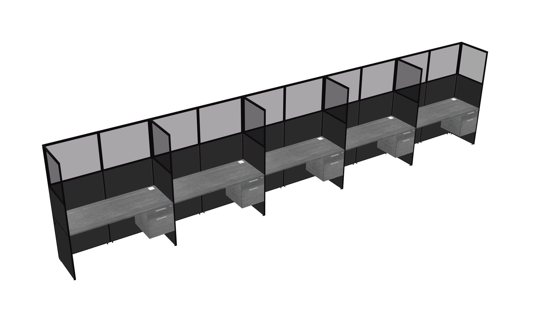 Grey Shared Rectangular Office Cubicle Panel System With Hanging Drawers For 5 Persons