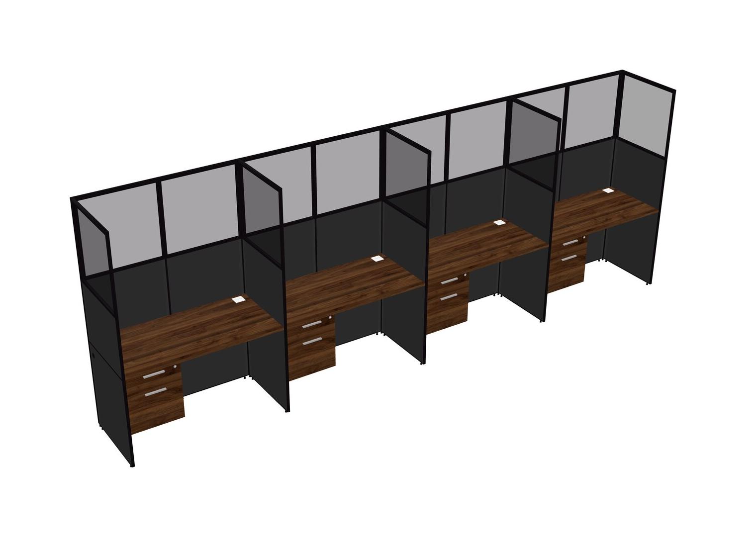 Columbia Walnut Shared Rectangular Office Cubicle Panel System With Hanging Drawers For 4 Persons