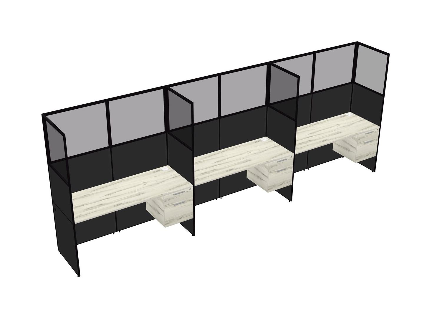 Heinne Holz Shared Rectangular Office Cubicle Panel System With Hanging Drawers For 3 Persons