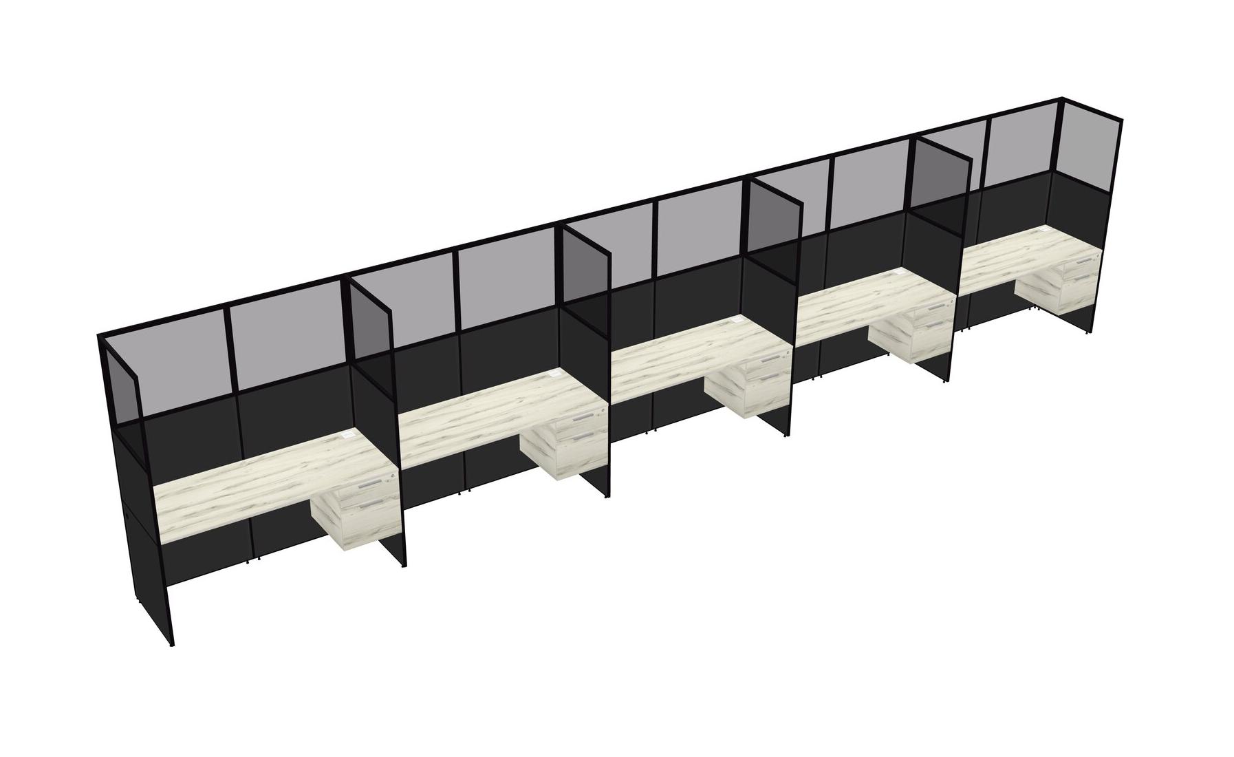Heinne Holz Shared Rectangular Office Cubicle Panel System With Hanging Drawers For 5 Persons