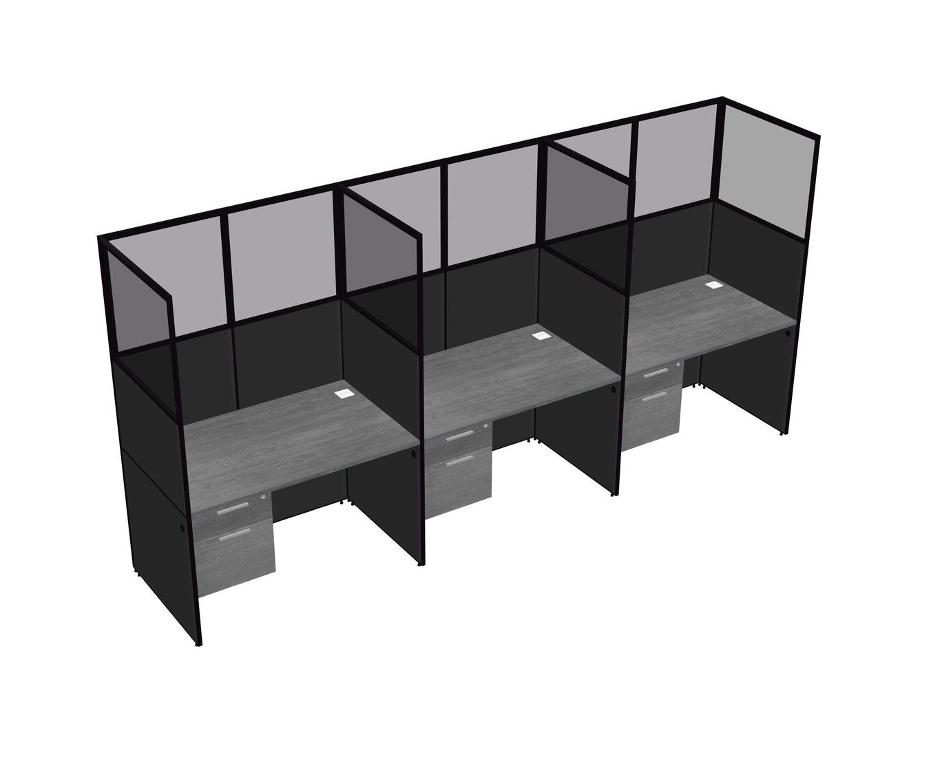 Grey Shared Rectangular Office Cubicle Panel System With Hanging Drawers For 3 Persons