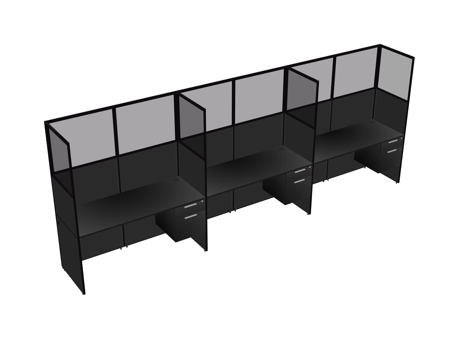 Black Shared Rectangular Office Cubicle Panel System With Hanging Drawers For 3 Persons