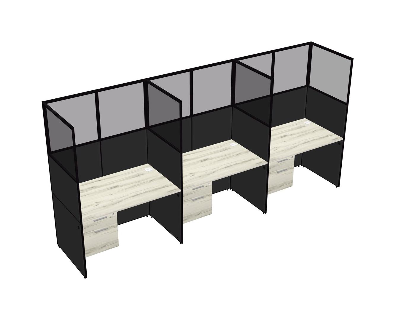 Heinne Holz Shared Rectangular Office Cubicle Panel System With Hanging Drawers For 3 Persons