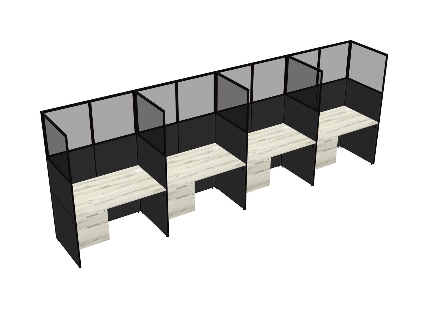 Heinne Holz Shared Rectangular Office Cubicle Panel System With Hanging Drawers For 4 Persons