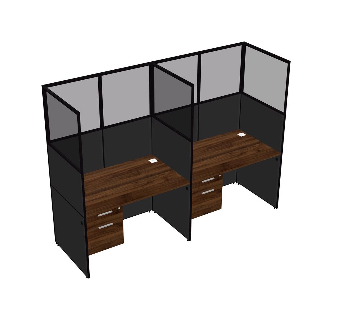 Columbia Walnut Shared Rectangular Office Cubicle Panel System With Hanging Drawers For 2 Persons