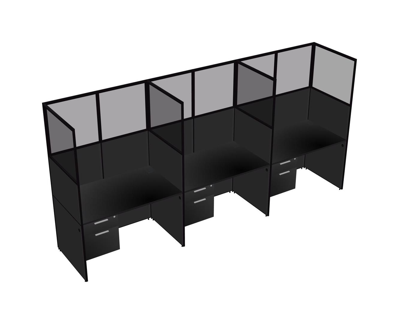Black Shared Rectangular Office Cubicle Panel System With Hanging Drawers For 3 Persons