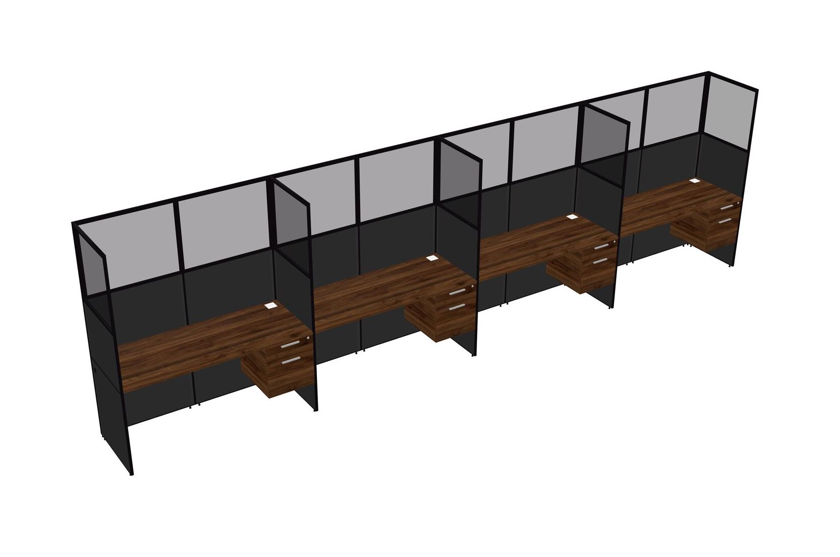 Columbia Walnut Shared Rectangular Office Cubicle Panel System With Hanging Drawers For 4 Persons