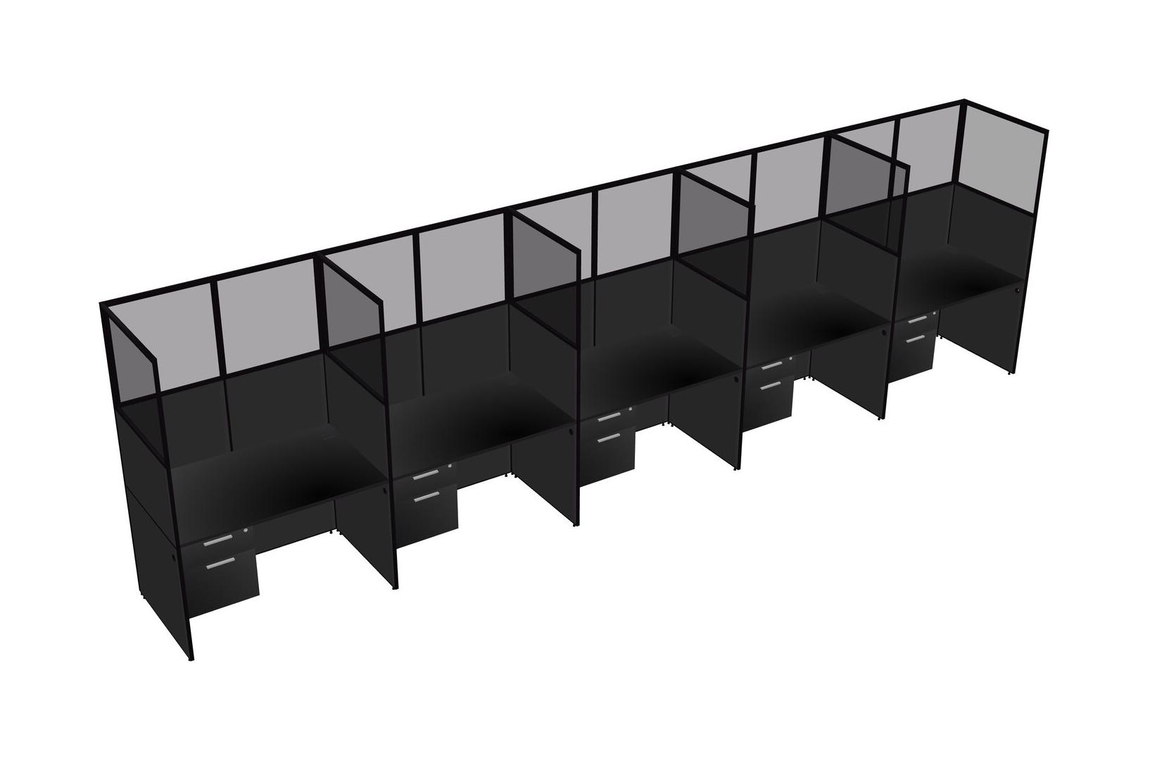 Black Shared Rectangular Office Cubicle Panel System With Hanging Drawers For 5 Persons