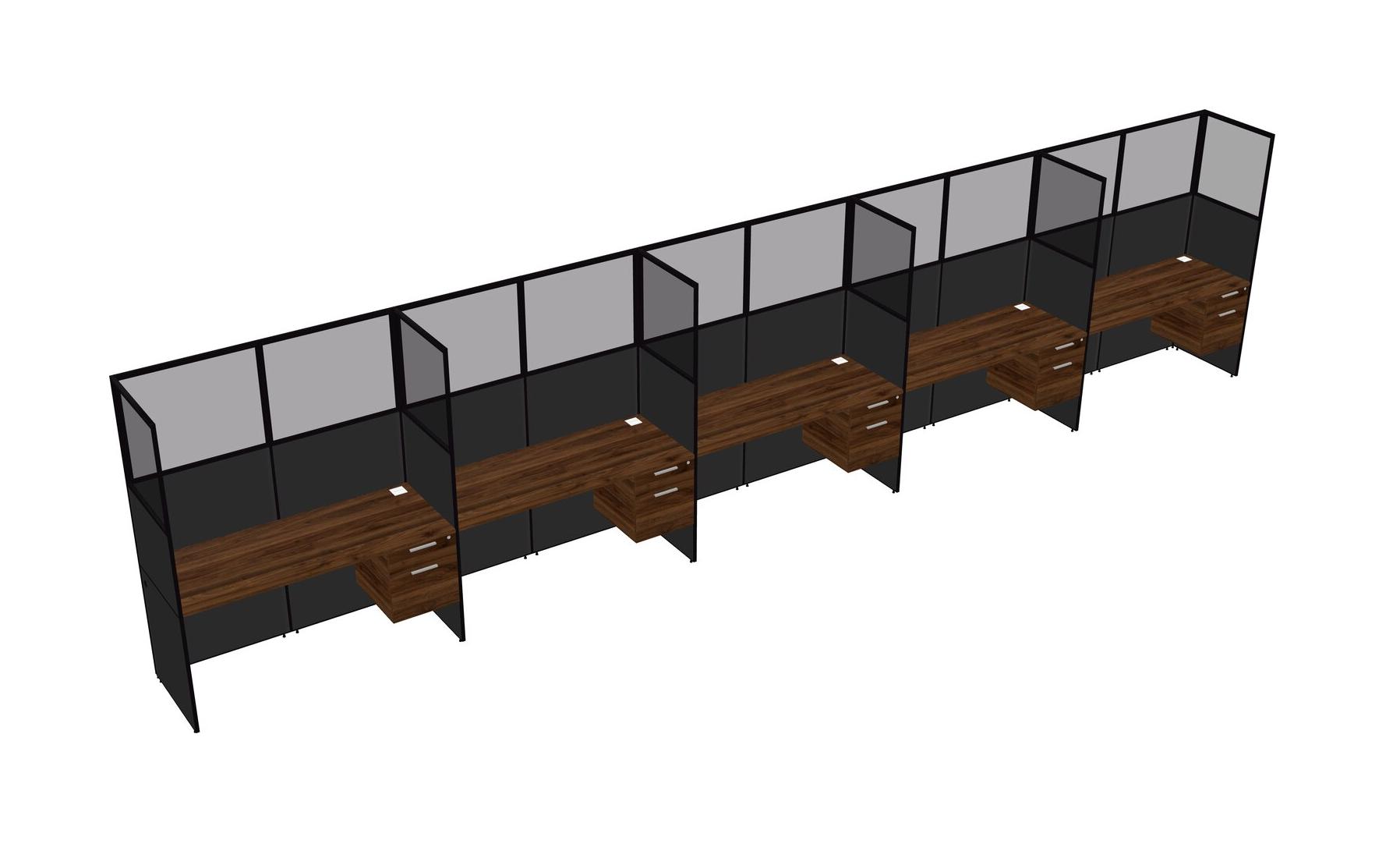 Columbia Walnut Shared Rectangular Office Cubicle Panel System With Hanging Drawers For 5 Persons