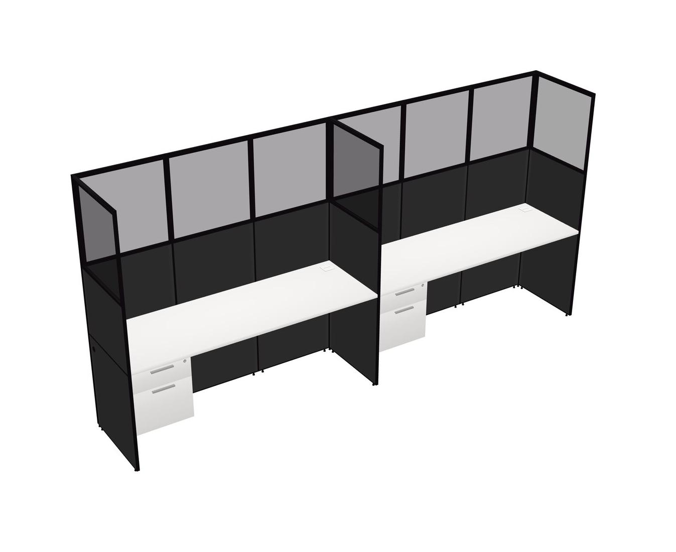 White Shared Rectangular Office Cubicle Panel System With Hanging Drawers For 2 Persons