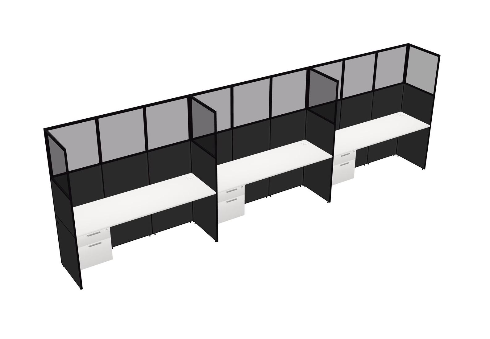 White Shared Rectangular Office Cubicle Panel System With Hanging Drawers For 3 Persons
