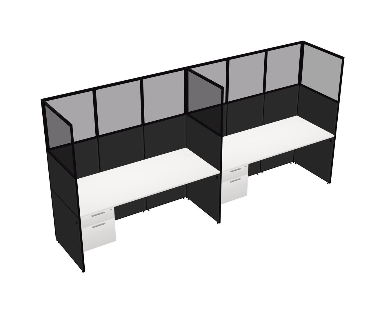 White Shared Rectangular Office Cubicle Panel System With Hanging Drawers For 2 Persons