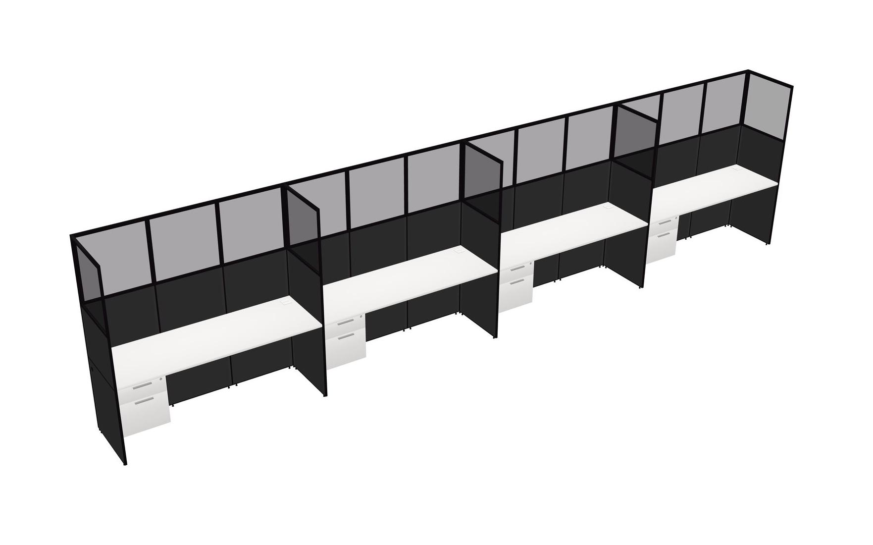 White Shared Rectangular Office Cubicle Panel System With Hanging Drawers For 4 Persons