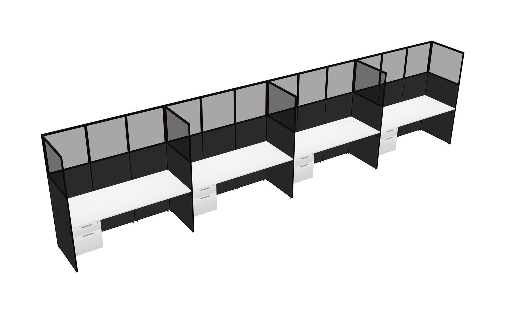 White Shared Rectangular Office Cubicle Panel System With Hanging Drawers For 4 Persons