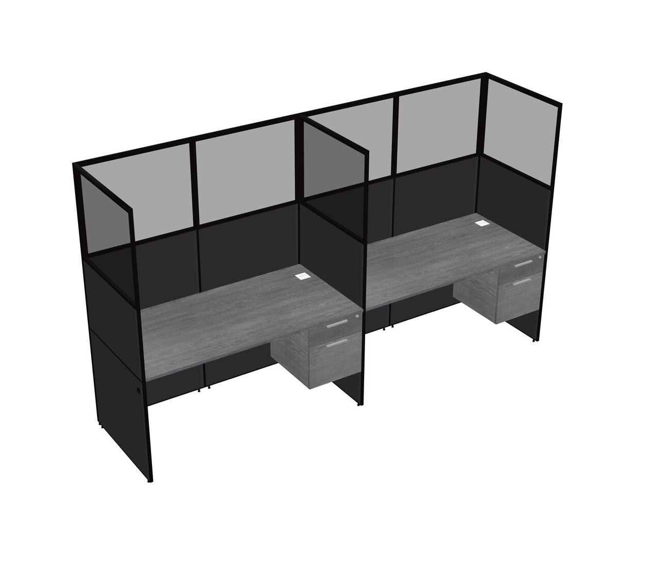 Grey Shared Rectangular Office Cubicle Panel System With Hanging Drawers For 2 Persons