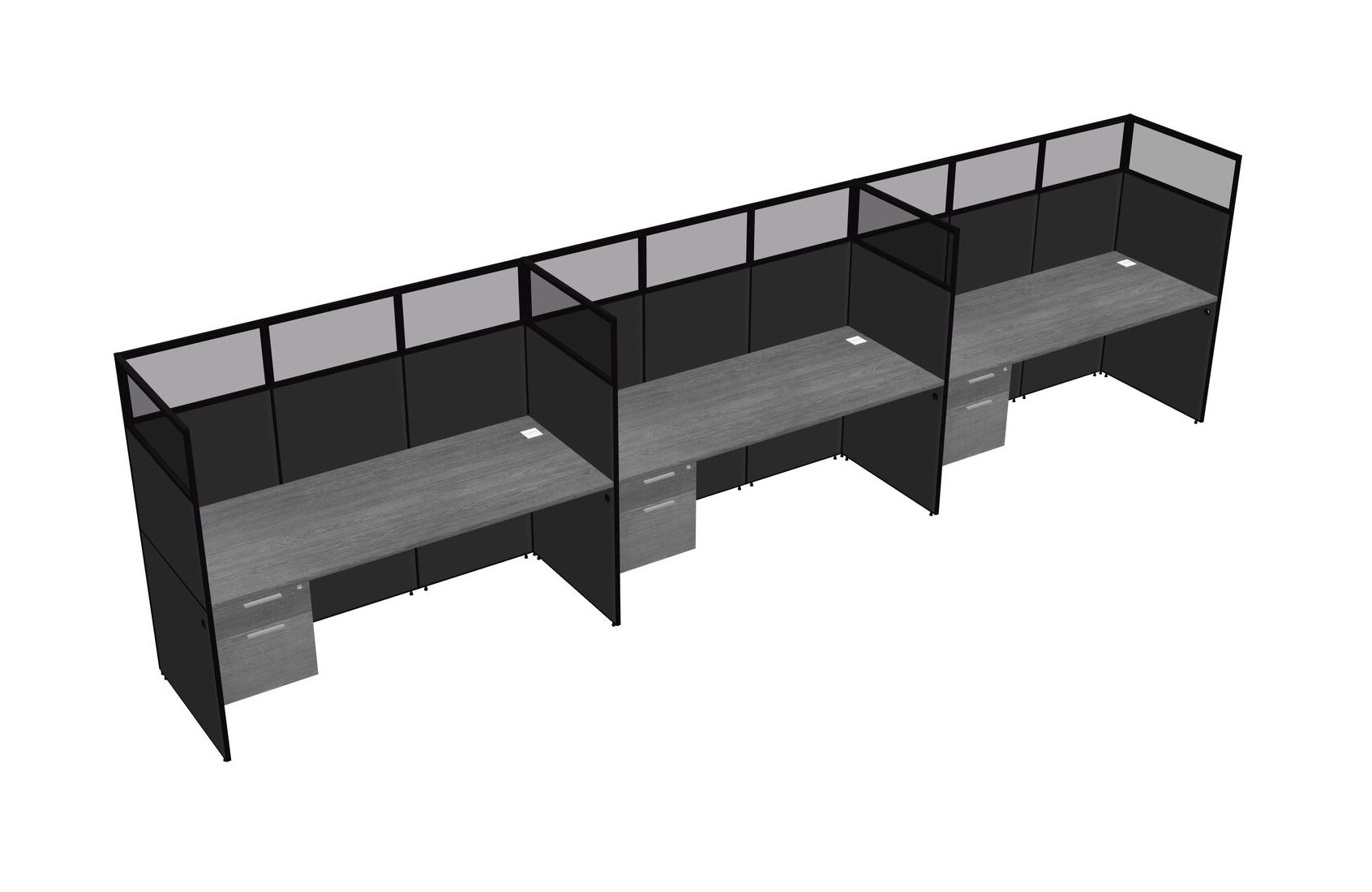 Grey Shared Rectangular Office Cubicle Panel System With Hanging Drawers For 3 Persons