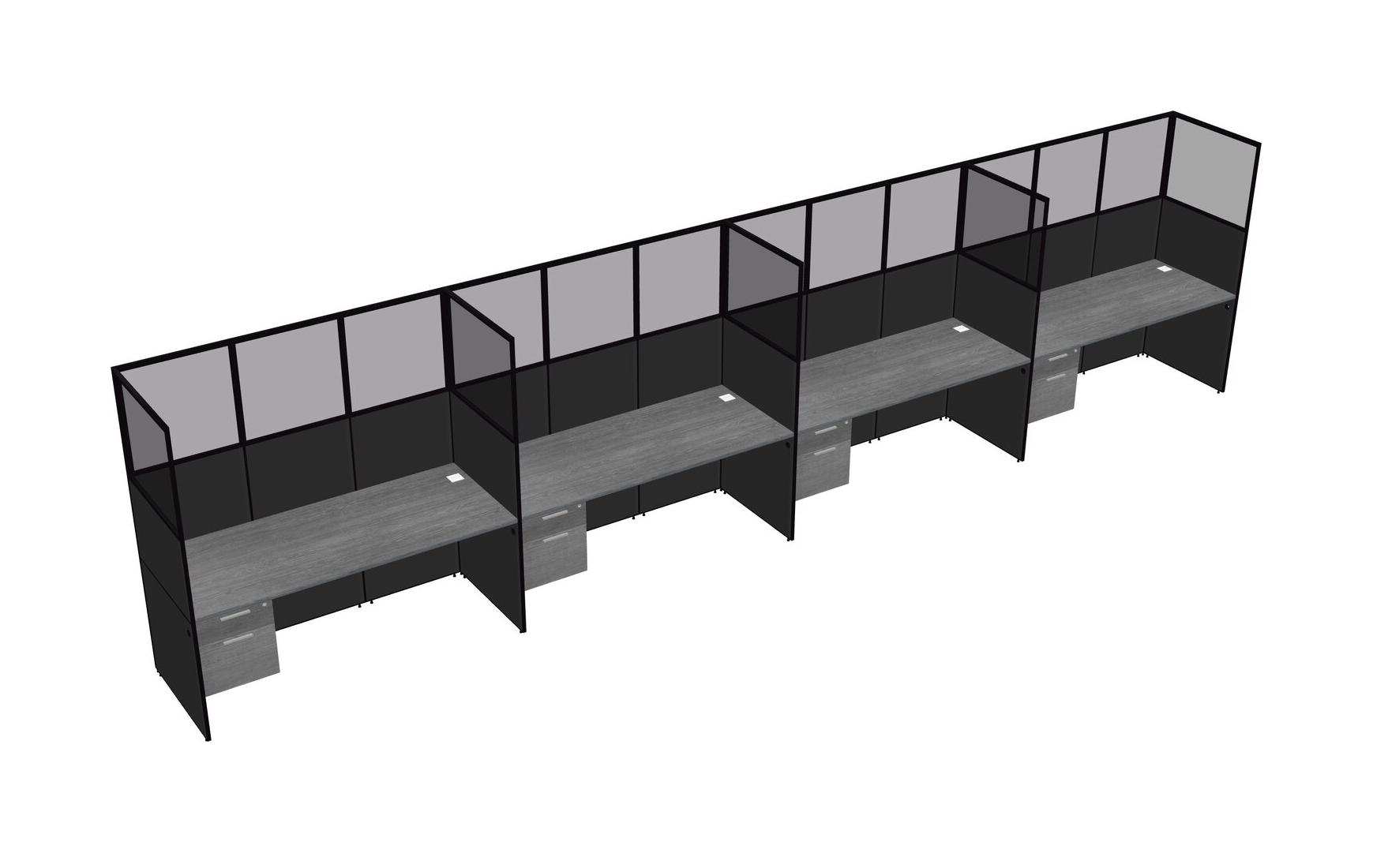 Grey Shared Rectangular Office Cubicle Panel System With Hanging Drawers For 4 Persons