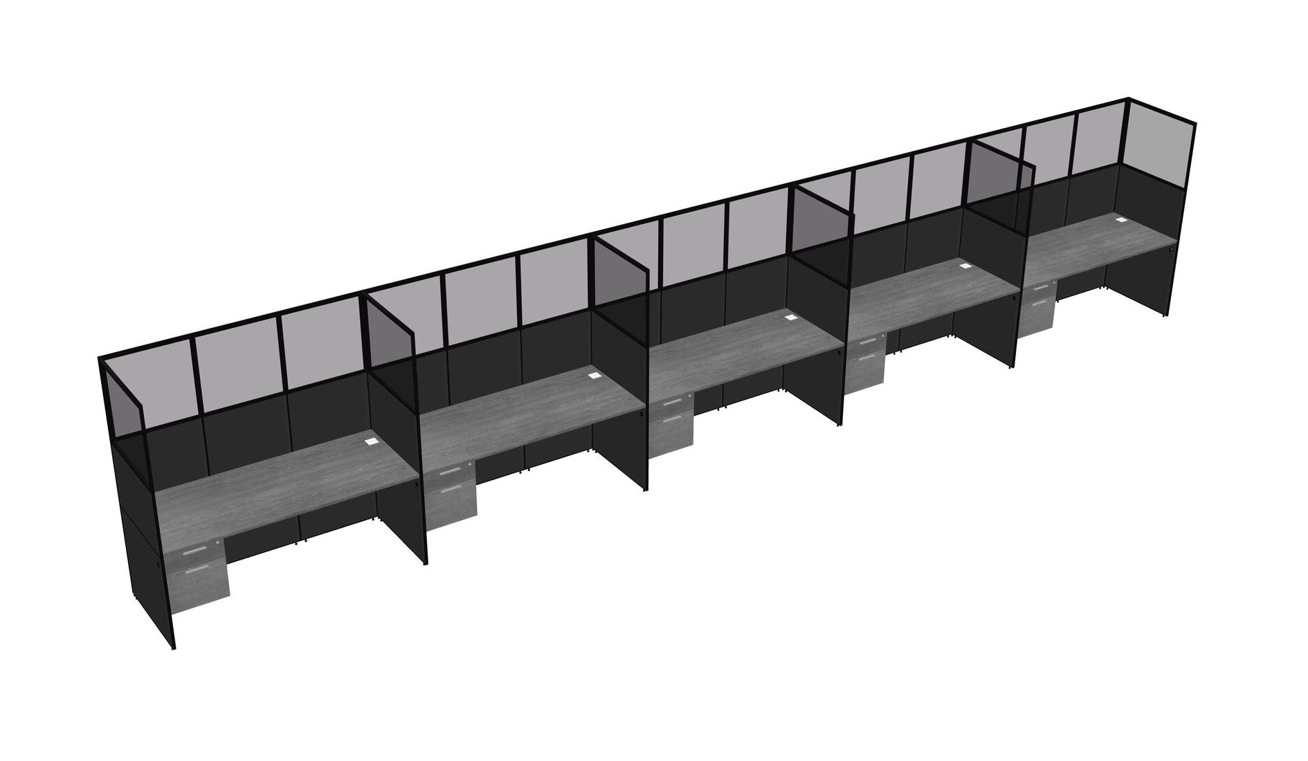 Grey Shared Rectangular Office Cubicle Panel System With Hanging Drawers For 5 Persons