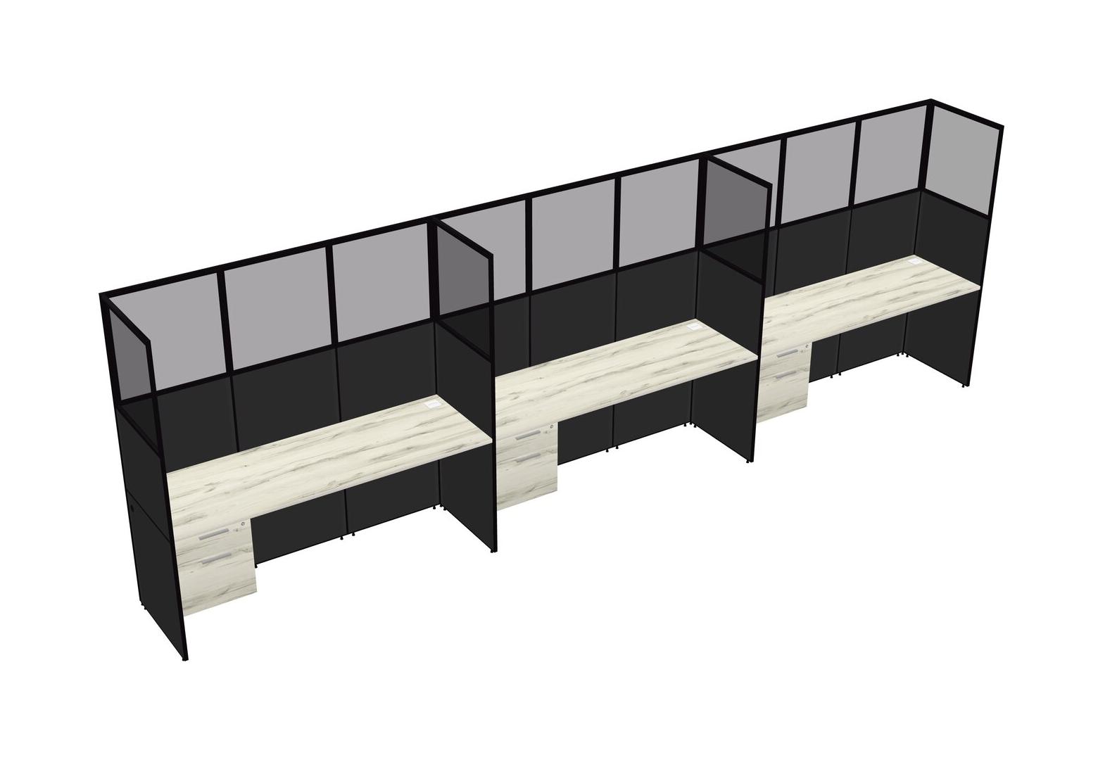 Heinne Holz Shared Rectangular Office Cubicle Panel System With Hanging Drawers For 3 Persons