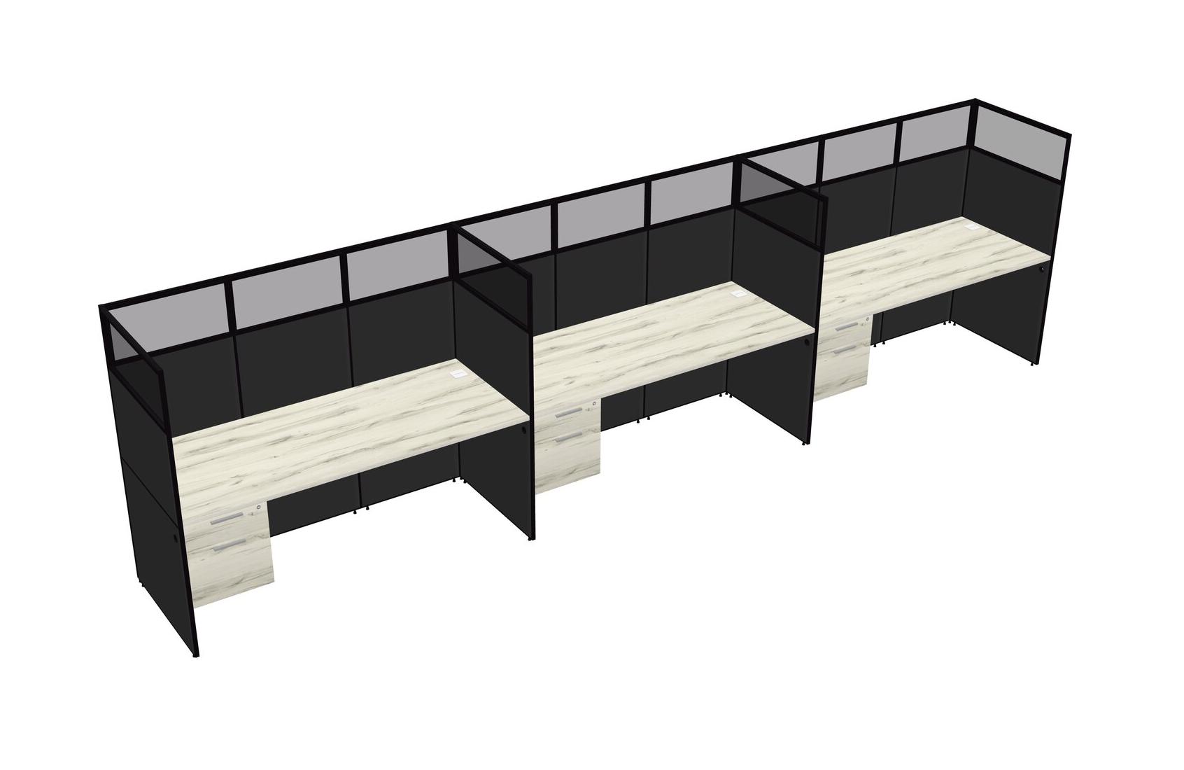 Heinne Holz Shared Rectangular Office Cubicle Panel System With Hanging Drawers For 3 Persons