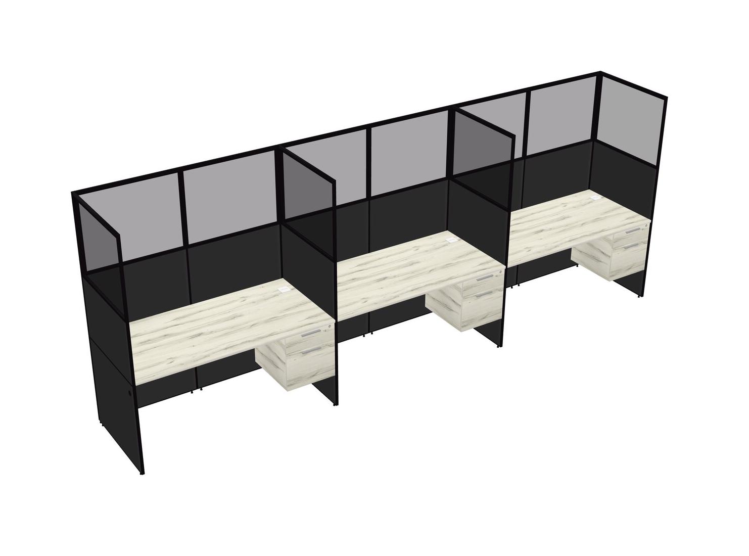 Heinne Holz Shared Rectangular Office Cubicle Panel System With Hanging Drawers For 3 Persons