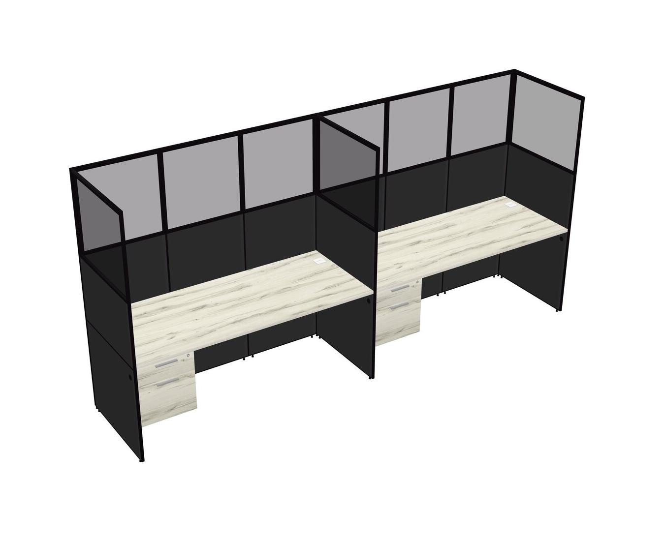 Heinne Holz Shared Rectangular Office Cubicle Panel System With Hanging Drawers For 2 Persons