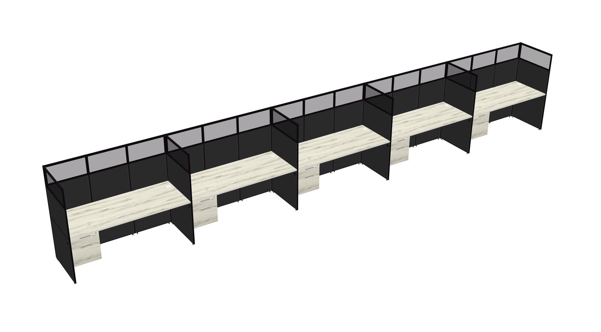 Heinne Holz Shared Rectangular Office Cubicle Panel System With Hanging Drawers For 5 Persons