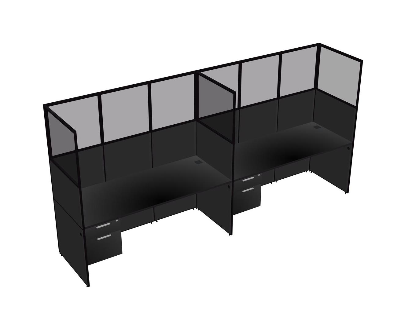Black Shared Rectangular Office Cubicle Panel System With Hanging Drawers For 2 Persons