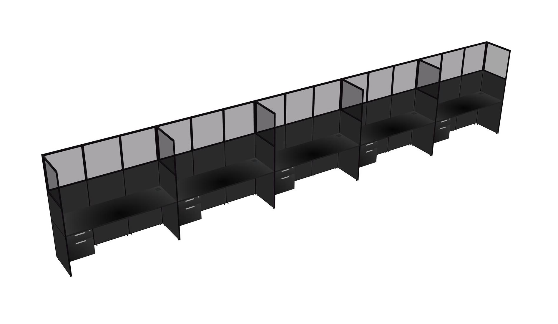 Black Shared Rectangular Office Cubicle Panel System With Hanging Drawers For 5 Persons