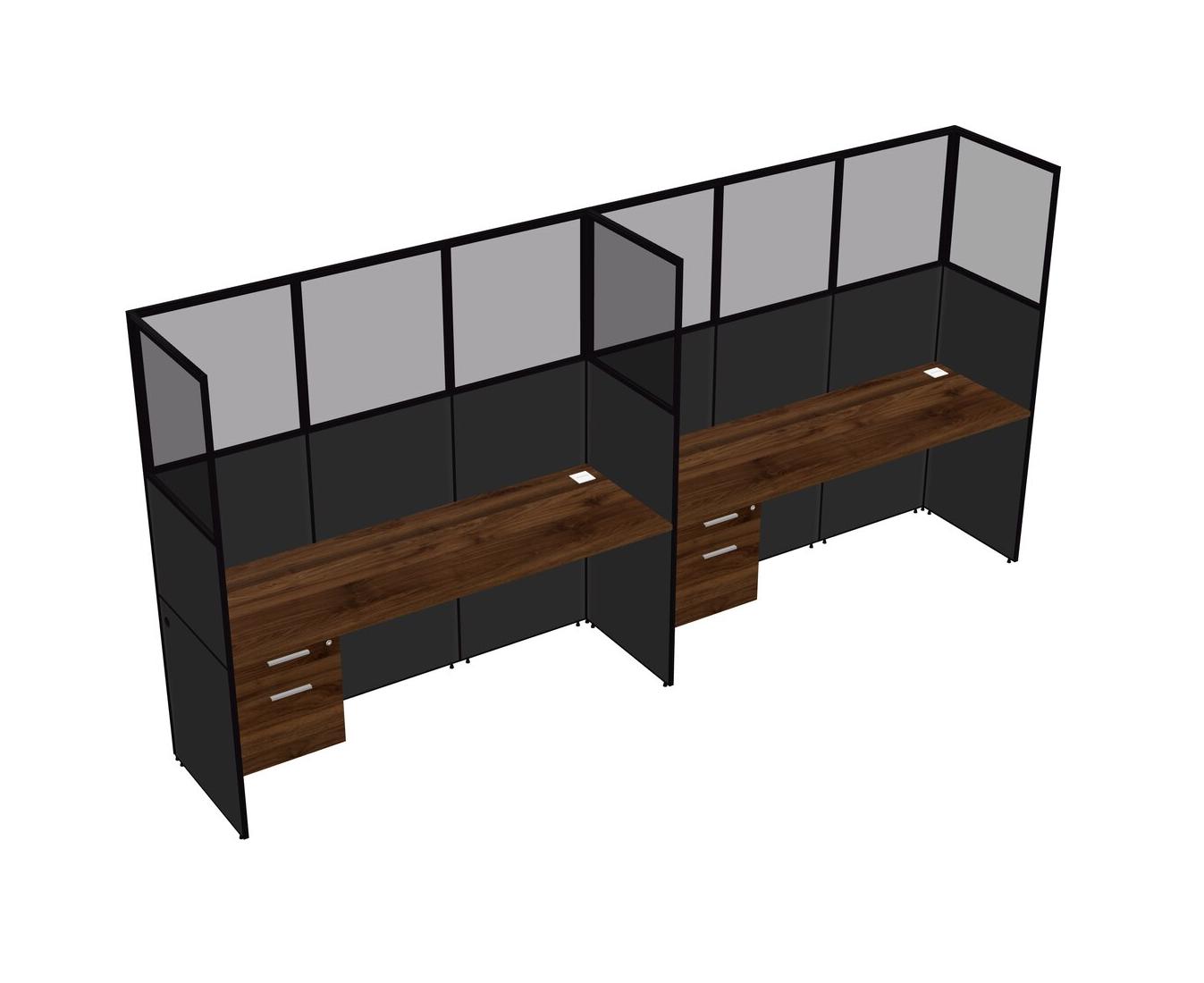 Columbia Walnut Shared Rectangular Office Cubicle Panel System With Hanging Drawers For 2 Persons