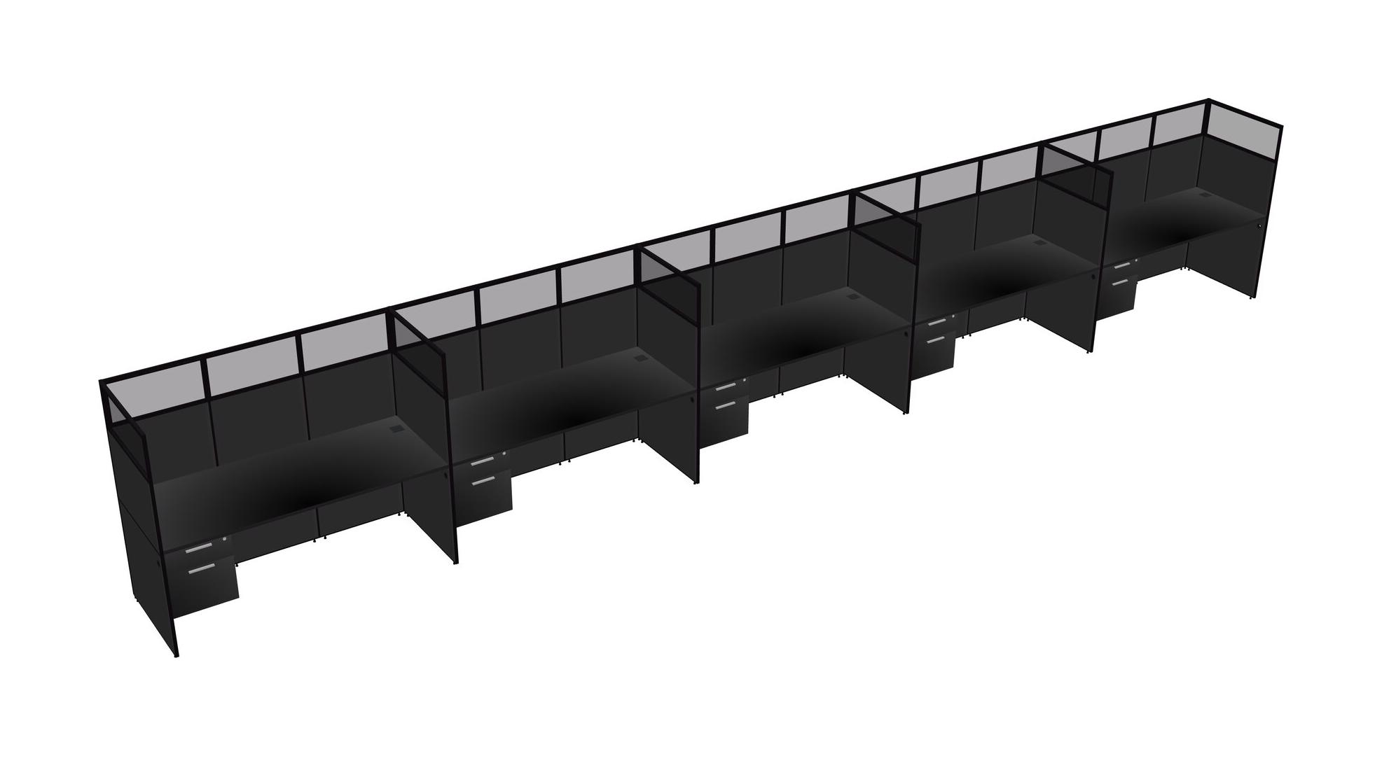 Black Shared Rectangular Office Cubicle Panel System With Hanging Drawers For 5 Persons