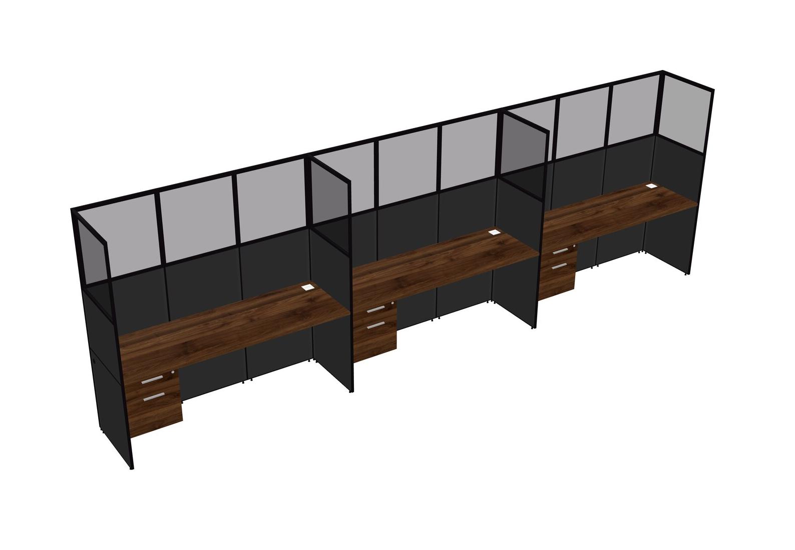 Columbia Walnut Shared Rectangular Office Cubicle Panel System With Hanging Drawers For 3 Persons
