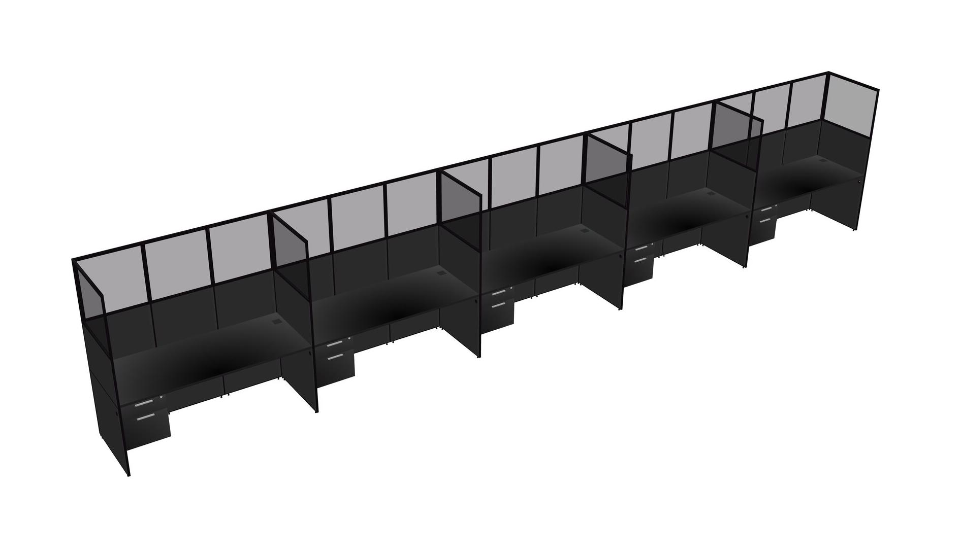 Black Shared Rectangular Office Cubicle Panel System With Hanging Drawers For 5 Persons
