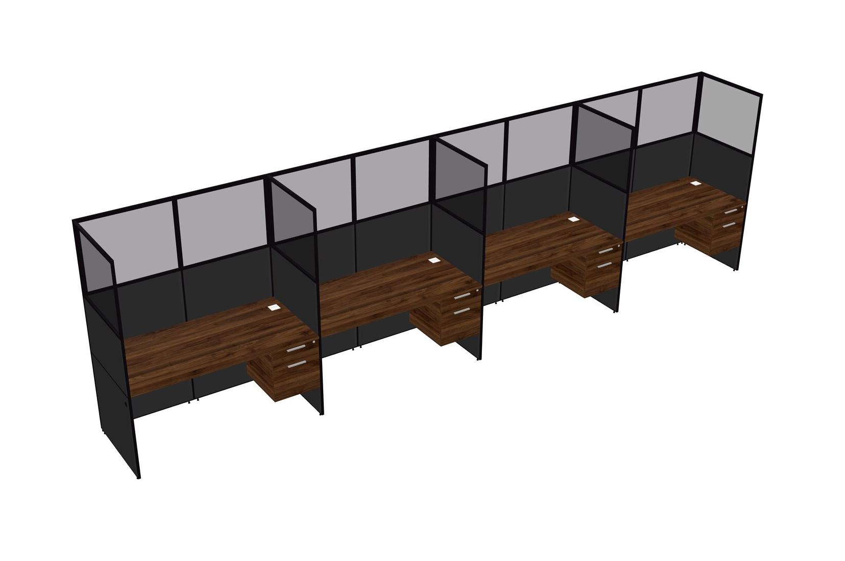 Columbia Walnut Shared Rectangular Office Cubicle Panel System With Hanging Drawers For 4 Persons
