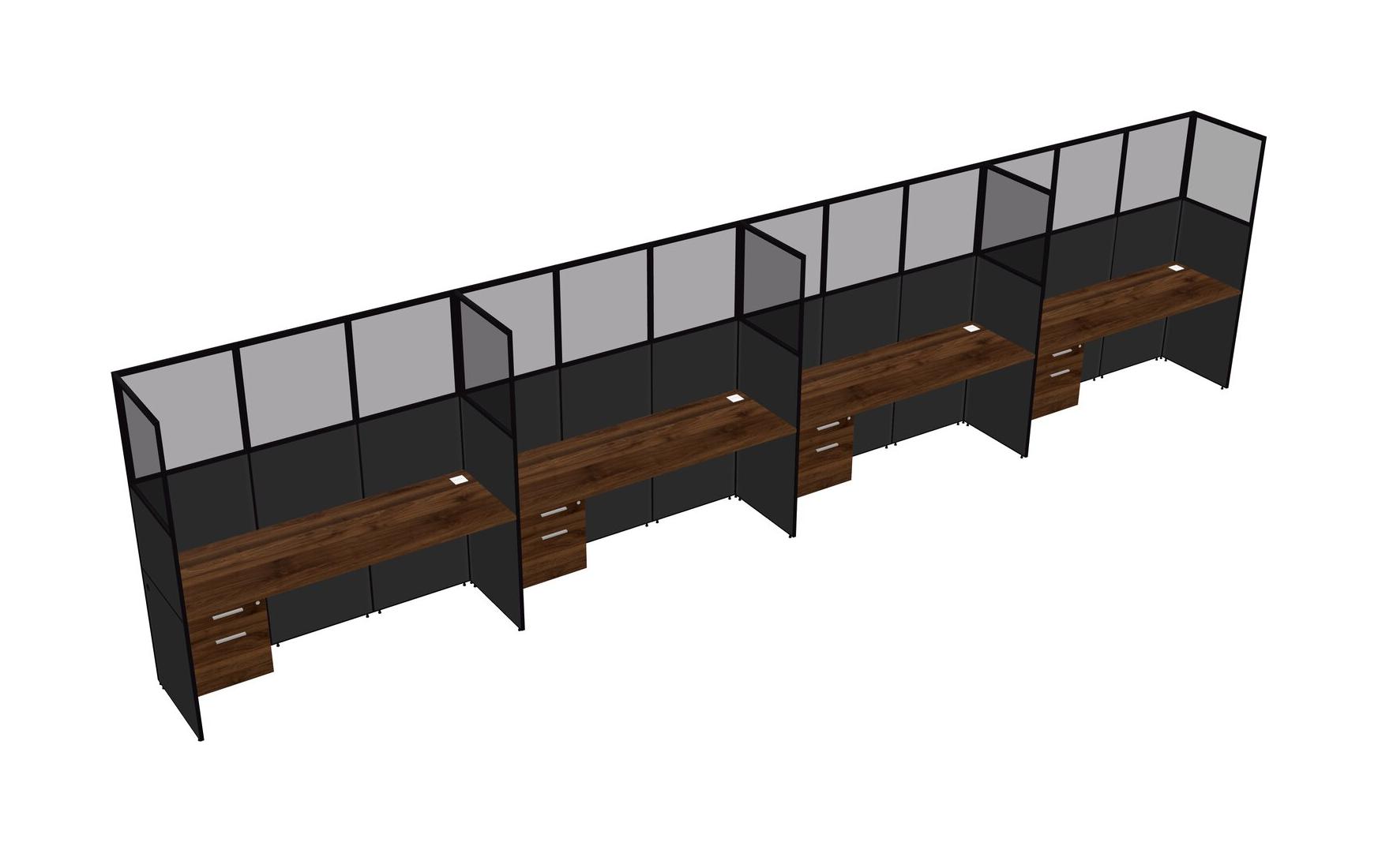 Columbia Walnut Shared Rectangular Office Cubicle Panel System With Hanging Drawers For 4 Persons