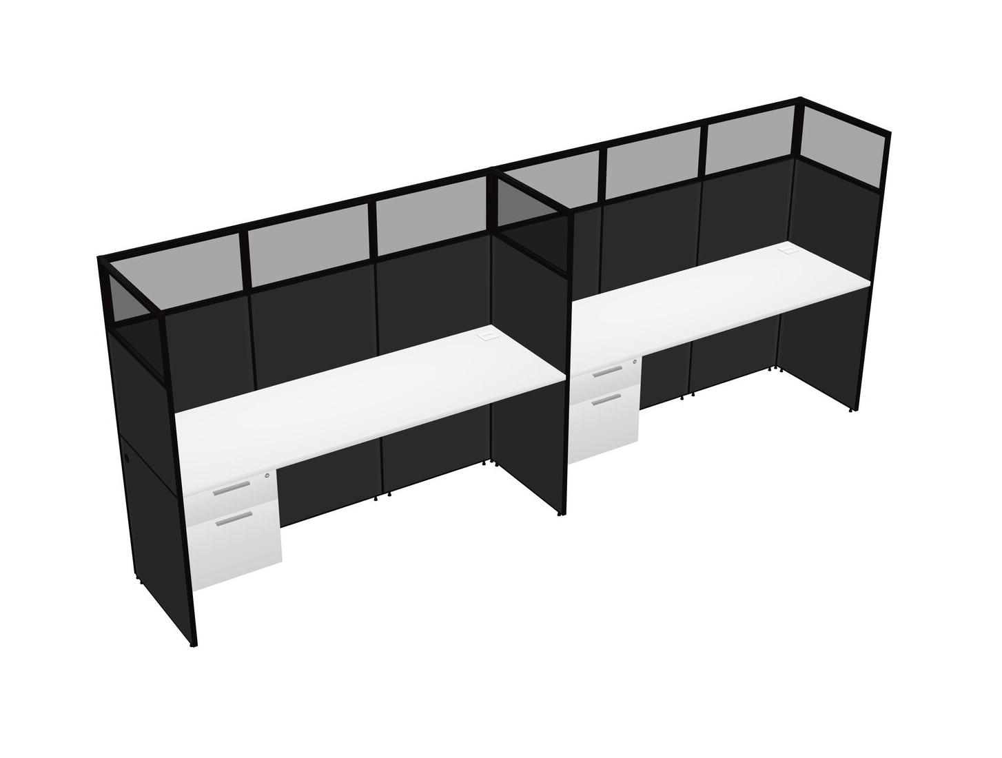 White Shared Rectangular Office Cubicle Panel System With Hanging Drawers For 2 Persons