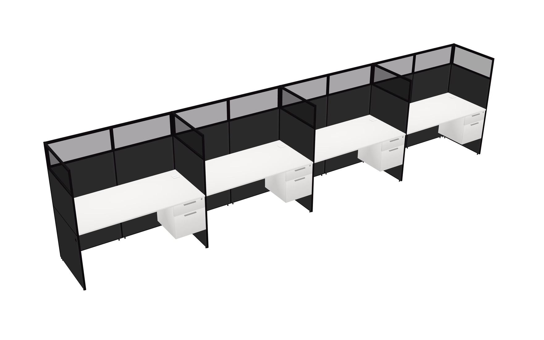 White Shared Rectangular Office Cubicle Panel System With Hanging Drawers For 4 Persons