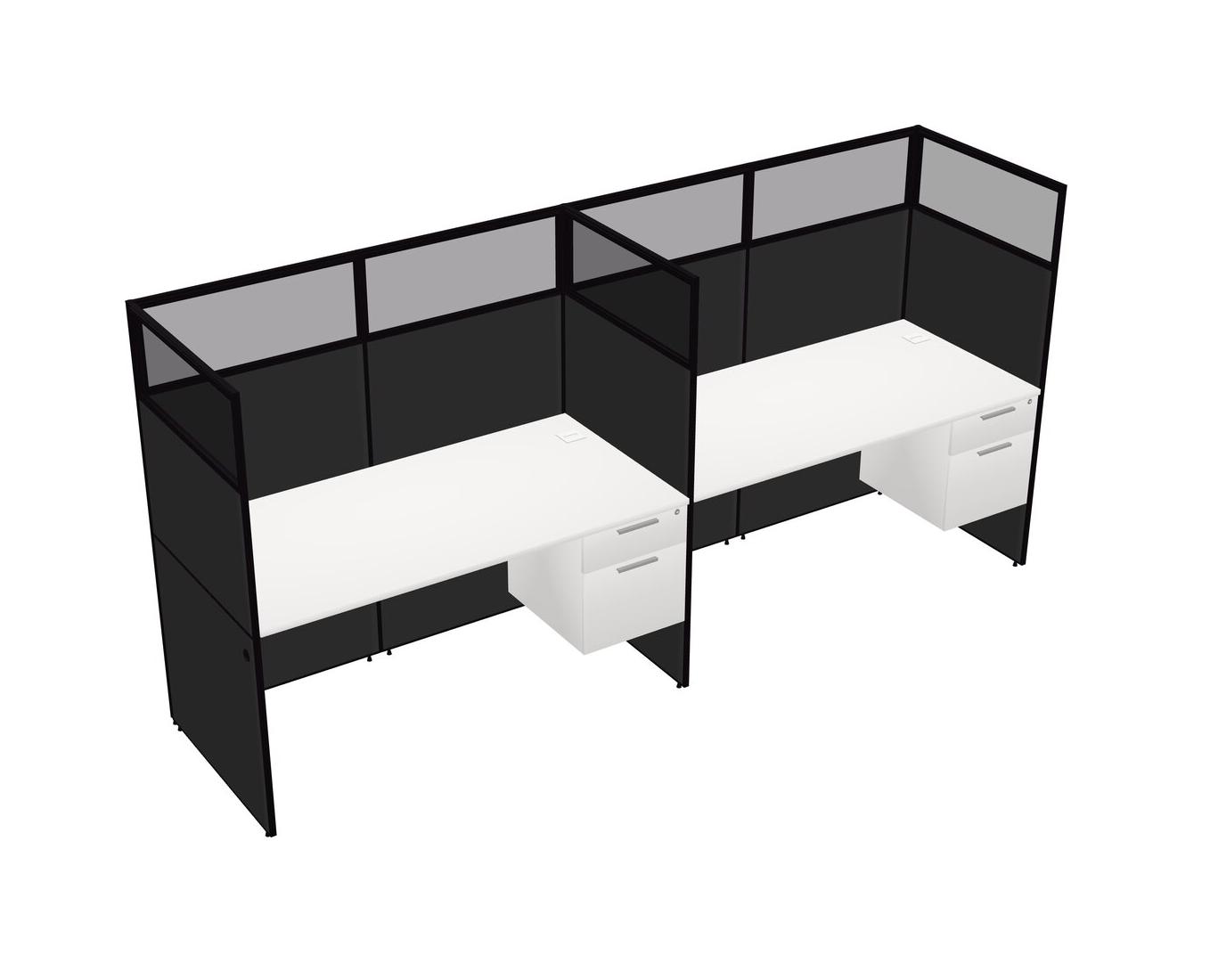 White Shared Rectangular Office Cubicle Panel System With Hanging Drawers For 2 Persons