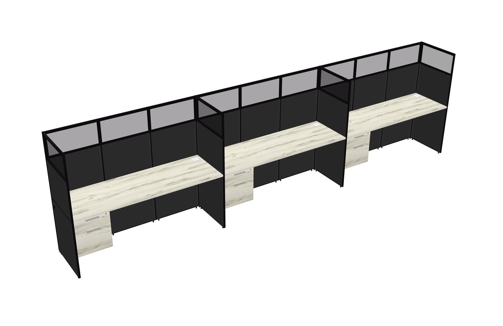 Heinne Holz Shared Rectangular Office Cubicle Panel System With Hanging Drawers For 3 Persons