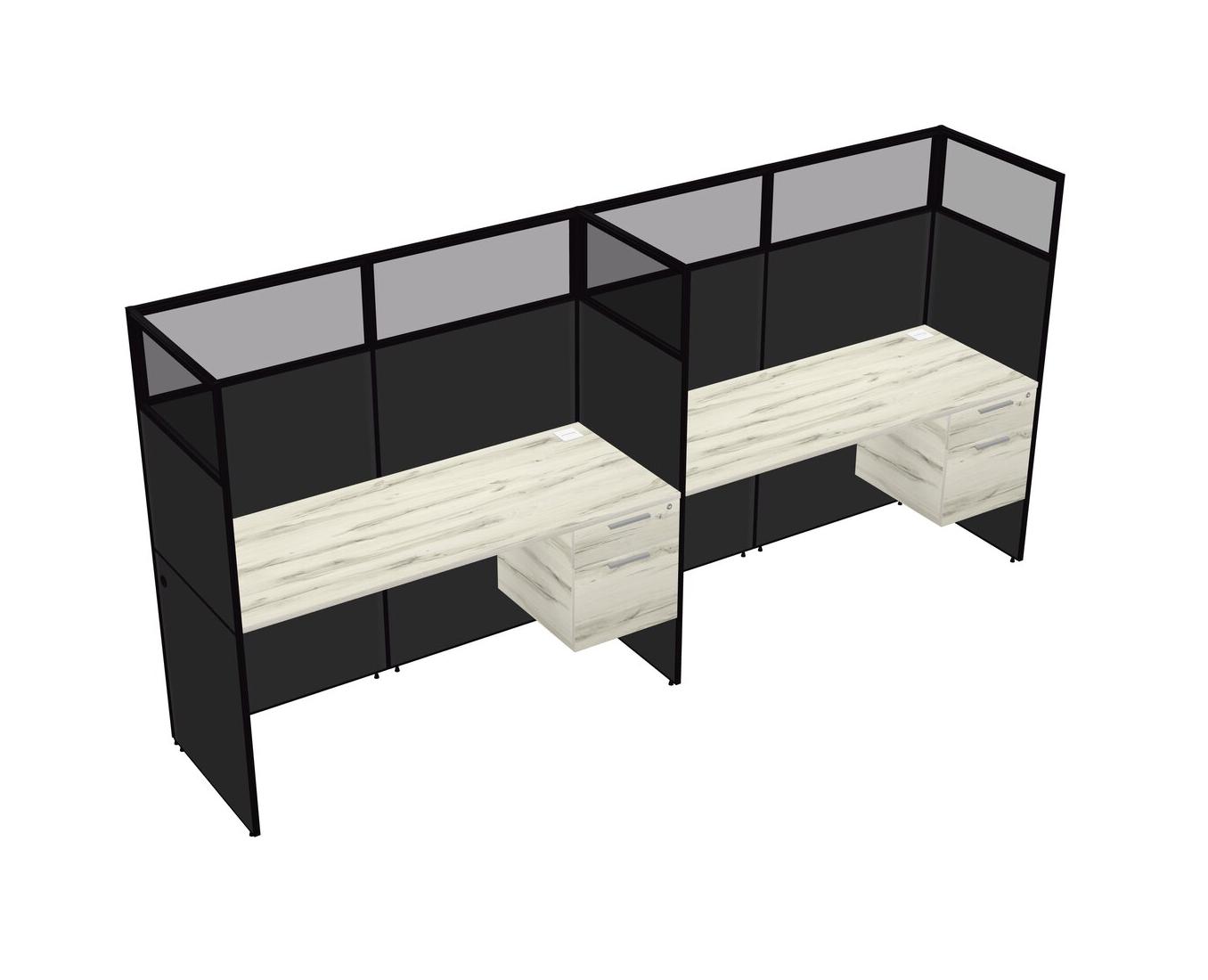 Heinne Holz Shared Rectangular Office Cubicle Panel System With Hanging Drawers For 2 Persons