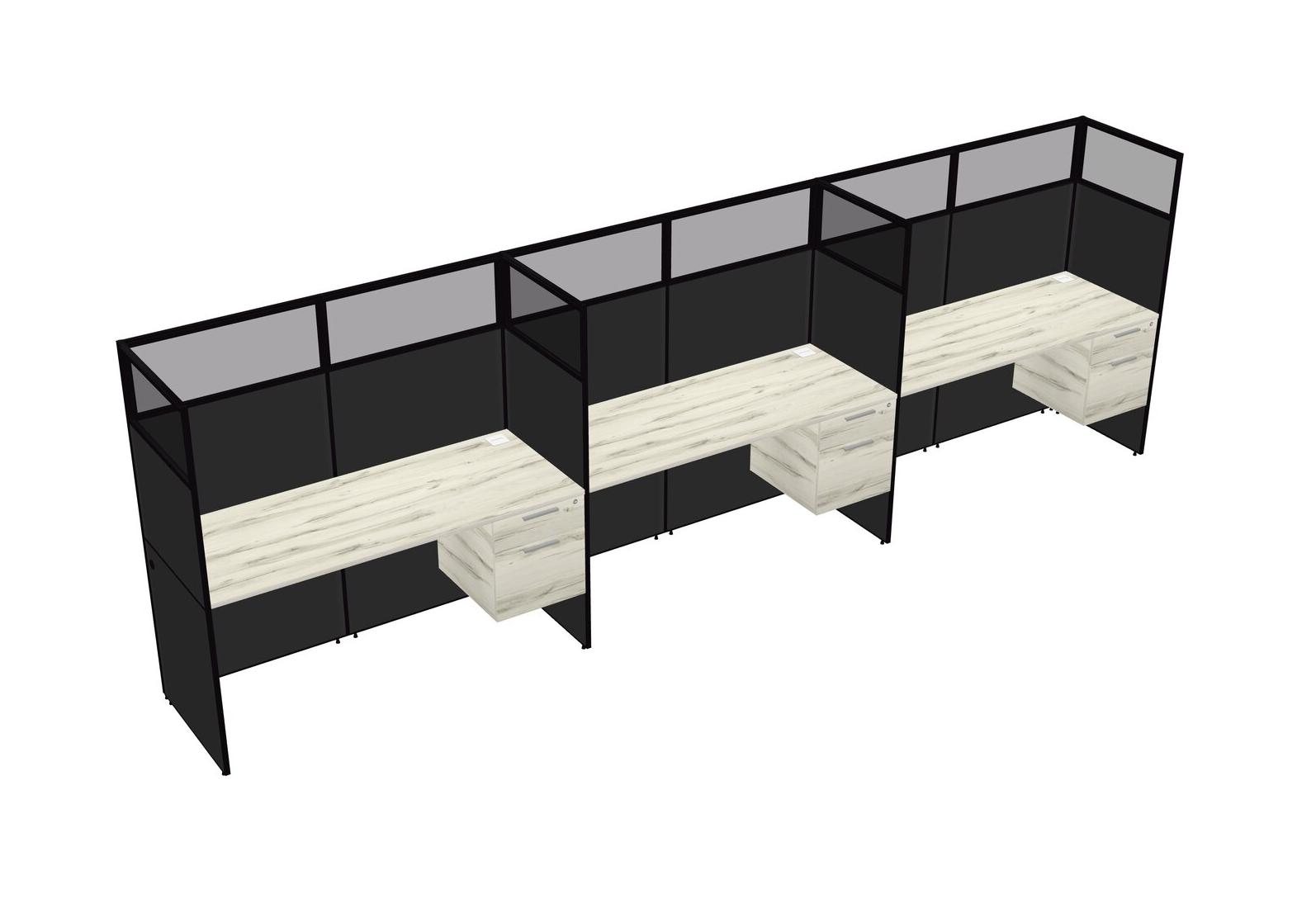 Heinne Holz Shared Rectangular Office Cubicle Panel System With Hanging Drawers For 3 Persons