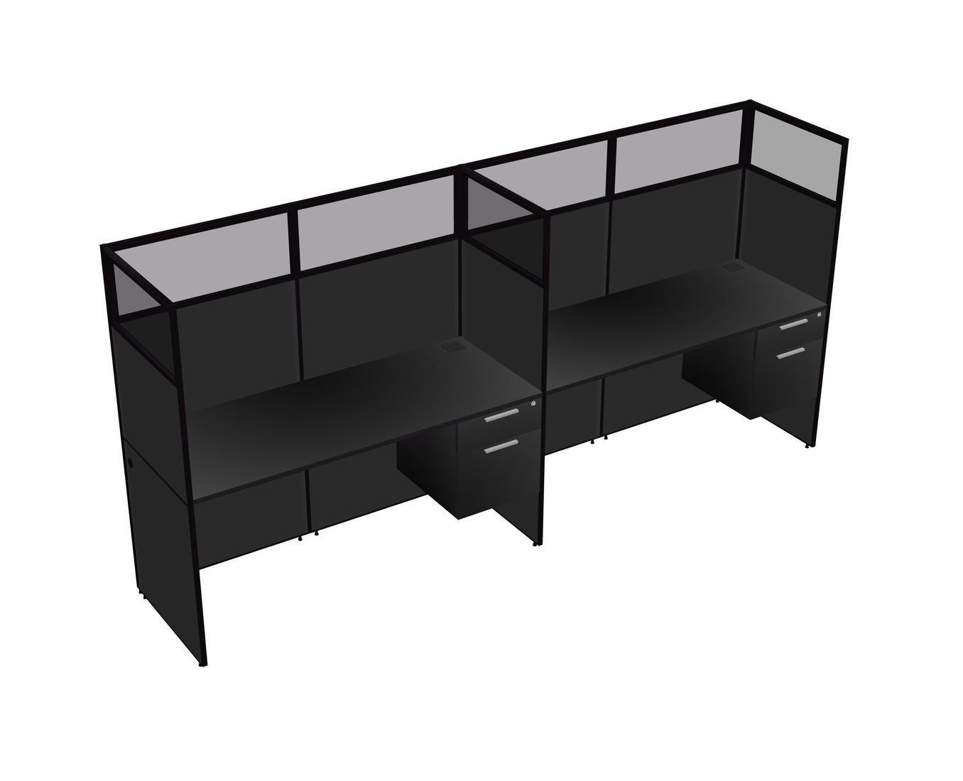 Black Shared Rectangular Office Cubicle Panel System With Hanging Drawers For 2 Persons