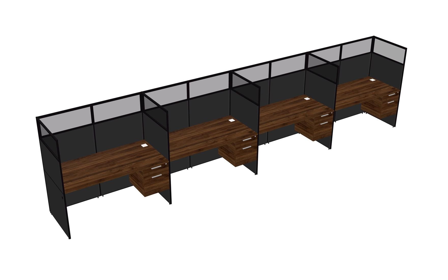 Columbia Walnut Shared Rectangular Office Cubicle Panel System With Hanging Drawers For 4 Persons