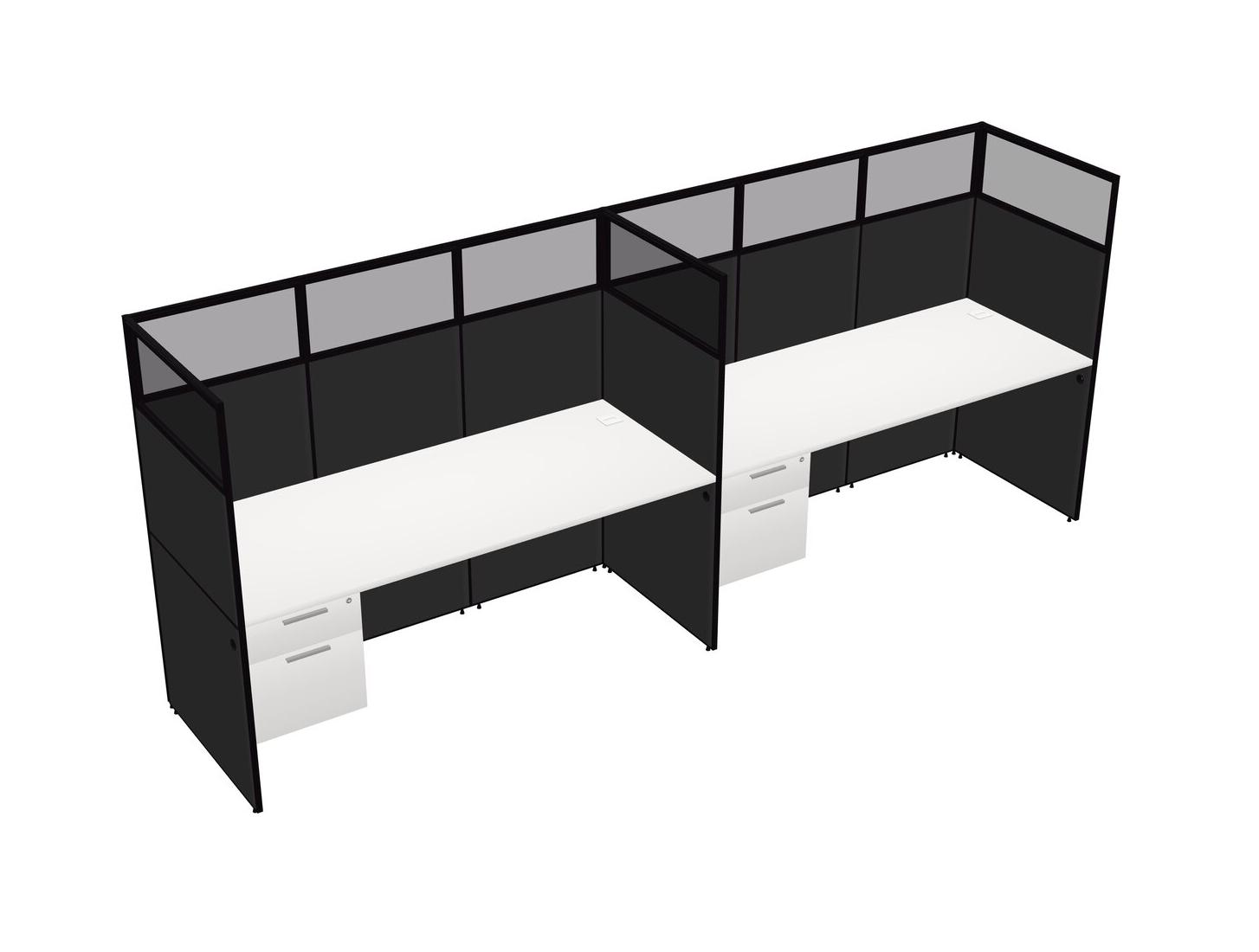 White Shared Rectangular Office Cubicle Panel System With Hanging Drawers For 2 Persons