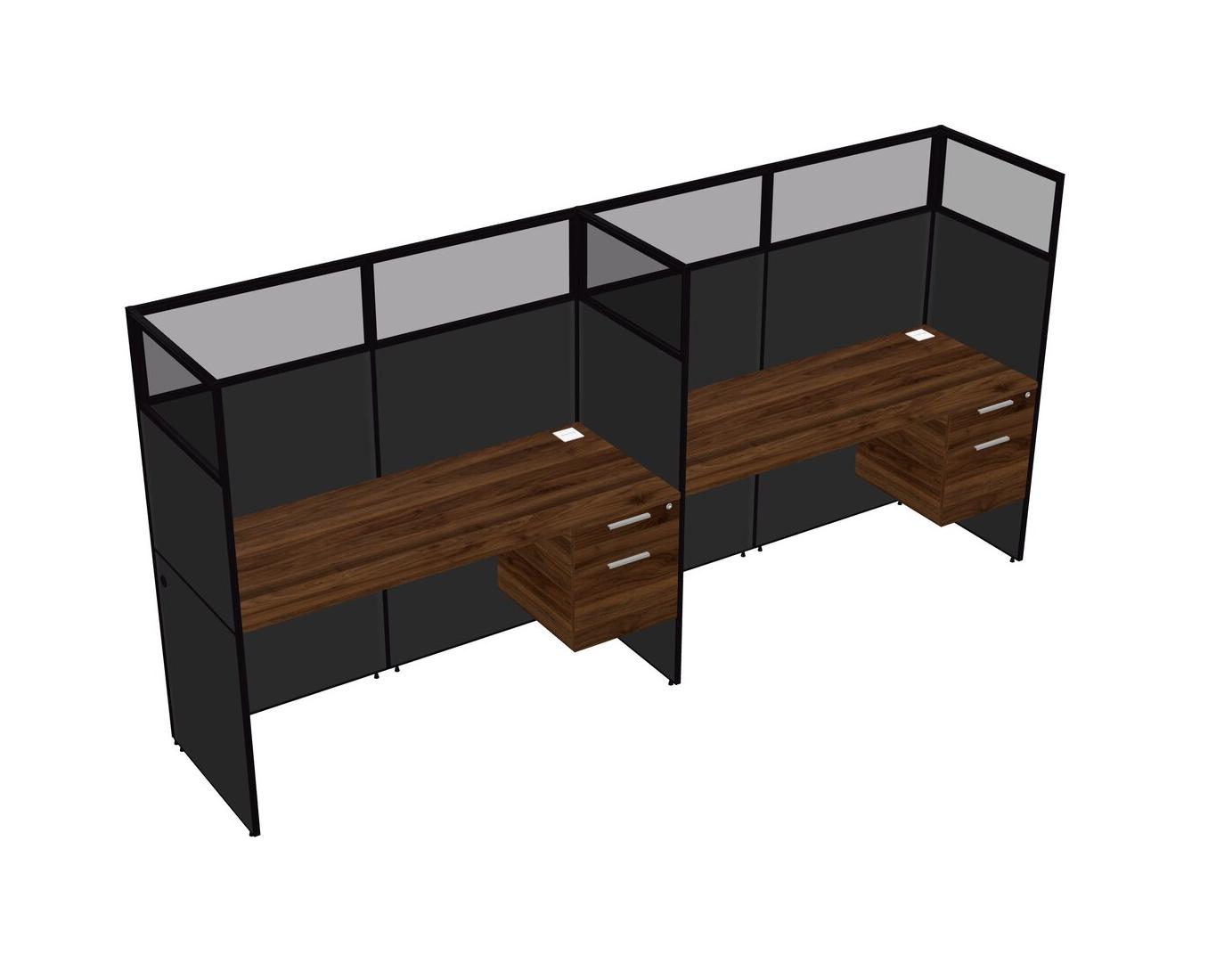 Columbia Walnut Shared Rectangular Office Cubicle Panel System With Hanging Drawers For 2 Persons