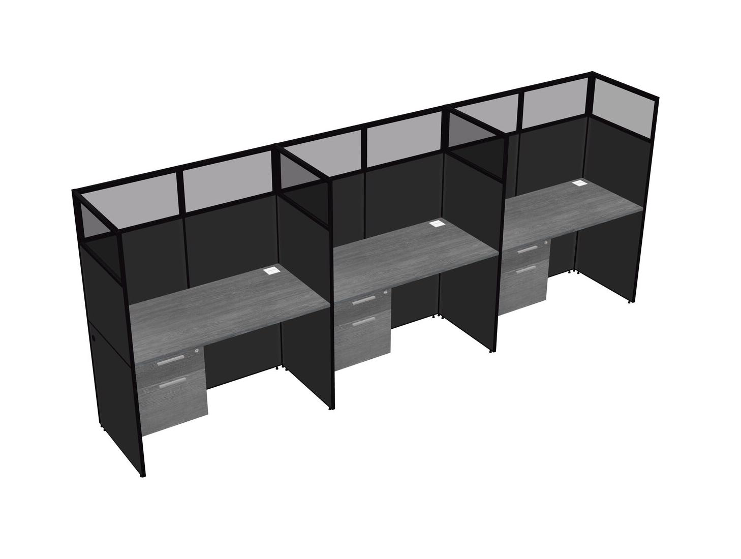 Grey Shared Rectangular Office Cubicle Panel System With Hanging Drawers For 3 Persons