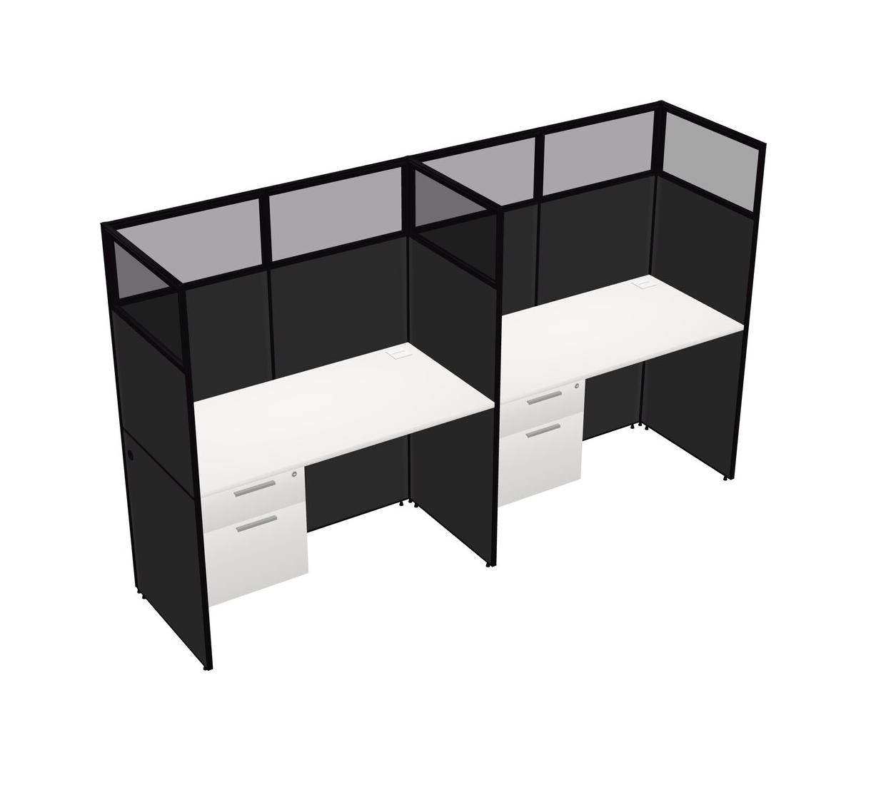 White Shared Rectangular Office Cubicle Panel System With Hanging Drawers For 2 Persons