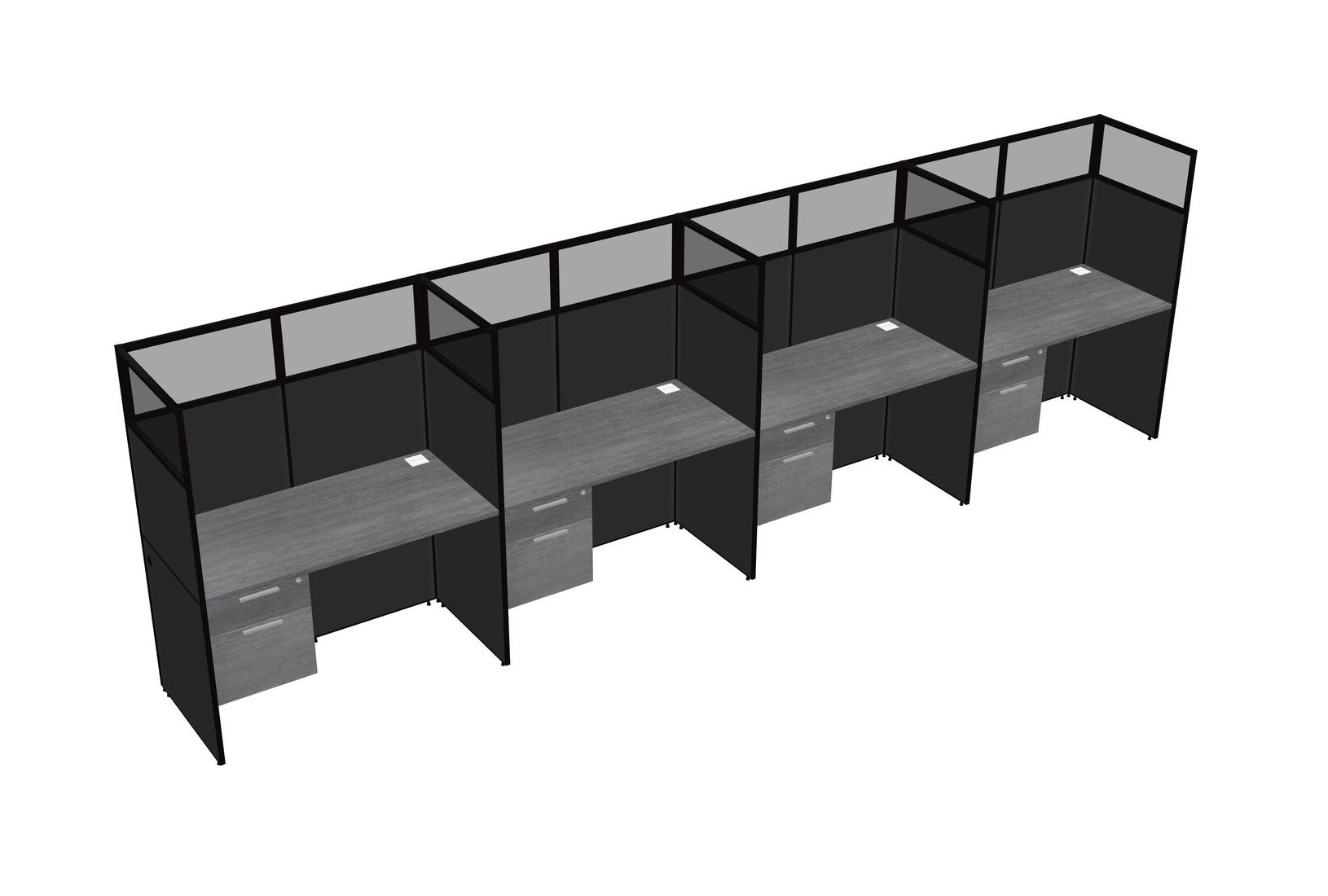 Grey Shared Rectangular Office Cubicle Panel System With Hanging Drawers For 4 Persons
